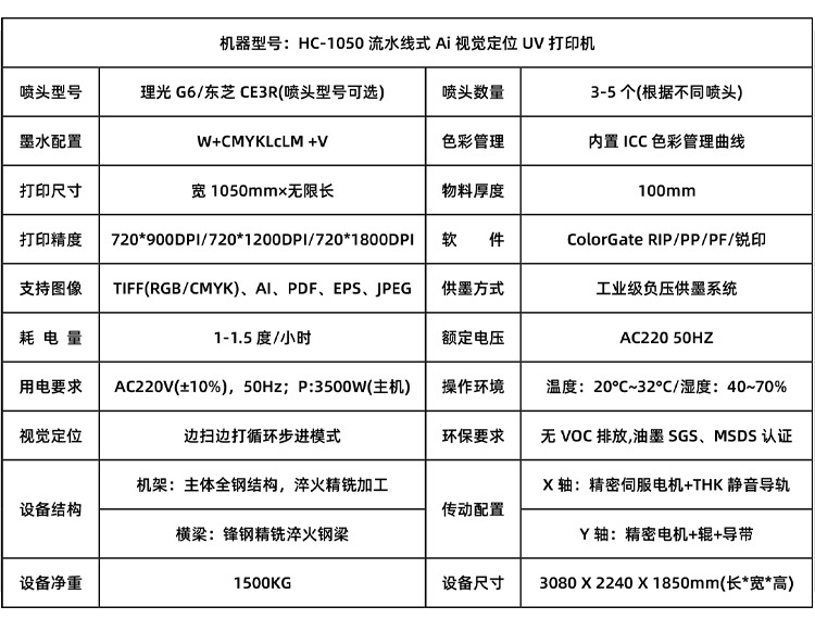 設(shè)備型號(hào):HC-1050流水線Ai視覺(jué)UV打印機(jī)